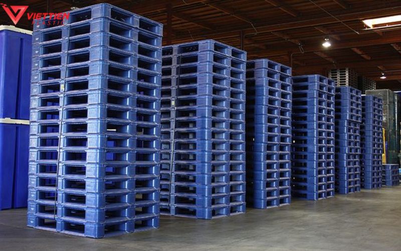 Pallet gỗ hấp thụ nước, nở – co và nhanh xuống cấp trong kho gần biển. Nguy cơ mối mọt, nứt tăng khi rửa kho thường xuyên. Trái lại, pallet nhựa từ HDPE hoặc PP kháng nước, kháng muối, chịu và đập tốt; ít biến đổi khi thay đổi nhiệt độ, đặc biệt hữu ích với kho lạnh. Tuổi thọ thực tế của nhựa pallet thường kéo dài nhiều năm, nhờ đó giảm số lần thay đổi và gián đoạn quá trình vận hành.